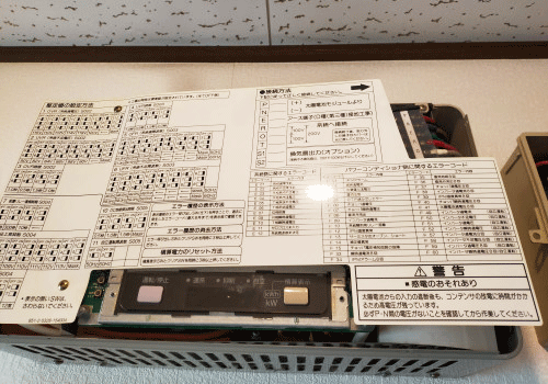 20年以上経過されたSANYOのパワーコンディショナーの点検させていただきました。FIT終了された2020年頃から動いていないとのことです。太陽光パネルは当時世界最高効率といわれていたHITです。接続箱にはパネルからの直流電流は正常にきております。やはりパワーコンディショナーは15年経過頃から取替の必要がでてきます。 ハイブリッドパワコンの蓄電システムの説明をさせて頂きました。HITの発電が復活してエネルギーを自家消費していただきたいです。T様、本日はありがとうございました。